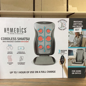 HoMedics Cordless Heated Deep Tissue Shiatsu Massage Cushion with 3 Massage Zones For Full Back Massage Coverage and Rechargeable Battery